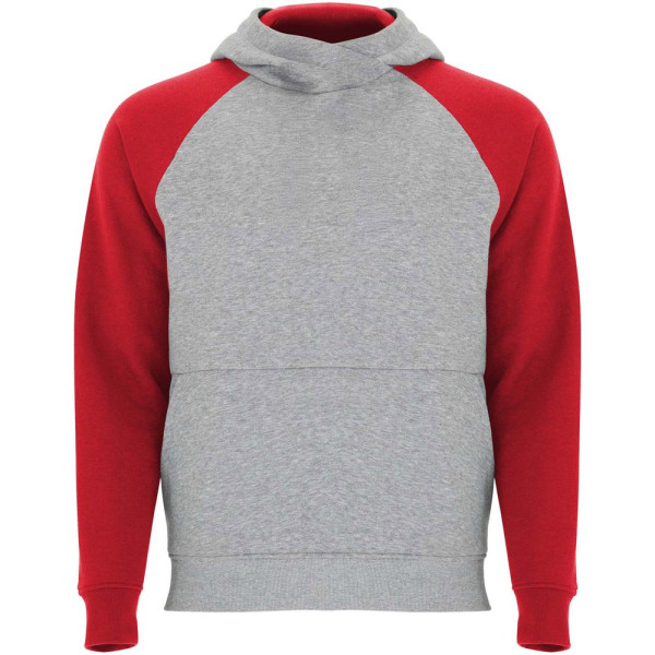 Zweifarbiger Unisex Kapuzenpulli. Kapuze mit gekreuztem Kragen und Metallösen. Innenkapuze, Kordelzug und Raglanärmel in Kontrastfarbe. Kängurutasche. Bündchen und Saum aus elastischem 1×1-Rippstrick. Abnehmbares Etikett.