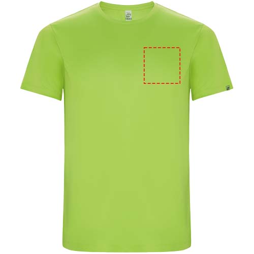 Funktions-T-Shirt aus recyceltem Polyester CONTROL DRY. Rundhalsausschnitt mit farblich abgesetzten Nähten. ECO-Logo-Etikett am Ärmel. Verpackung aus Recyclingmaterial. Herausnehmbares ECO-Etikett. Verpackung aus Recyclingmaterial. Technisches Gewebe. Das Modell ist 180 cm groß und trägt Größe M.