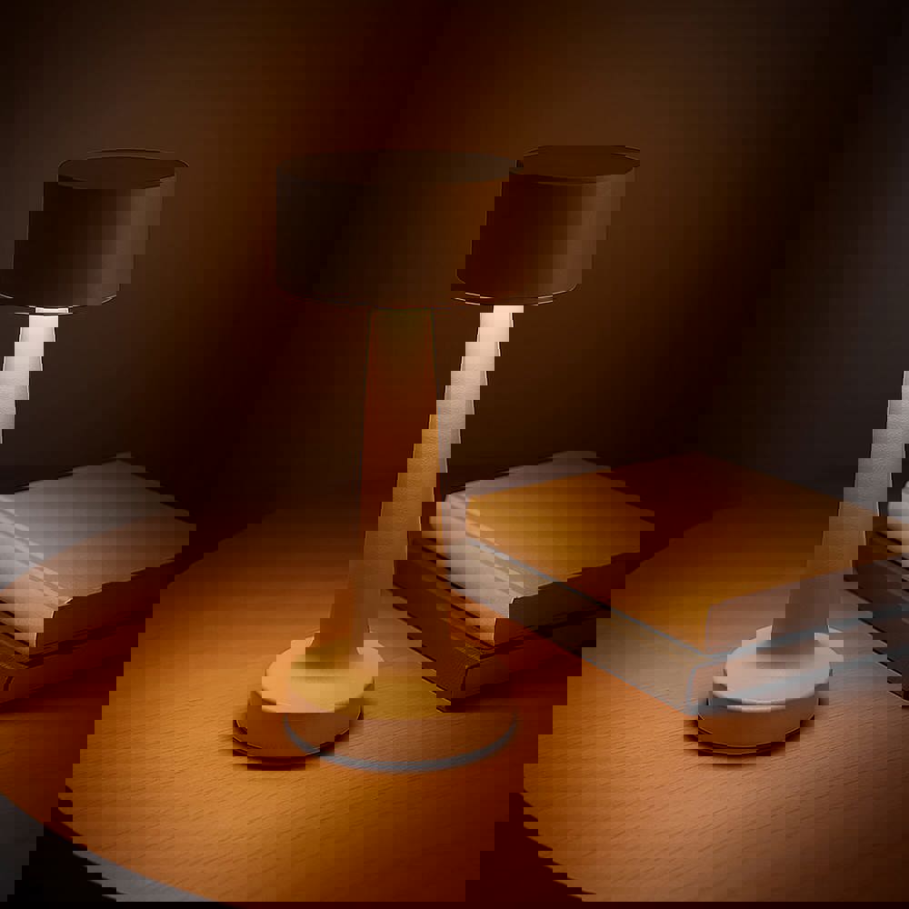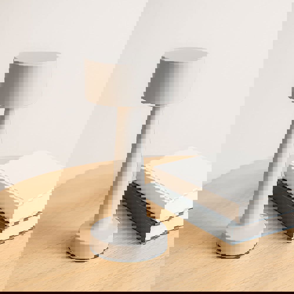 Beleuchten Sie Ihren Raum mit der Lumo Tischleuchte. Ein Tipp auf den Schalter wechselt zwischen drei Lichtmodi: warm, weiß und warmweiß. Länger drücken zum Dimmen. Bis zu 6 Stunden Leuchtdauer mit voller Ladung.