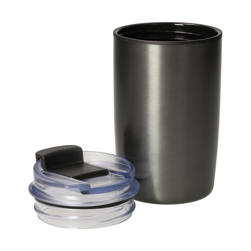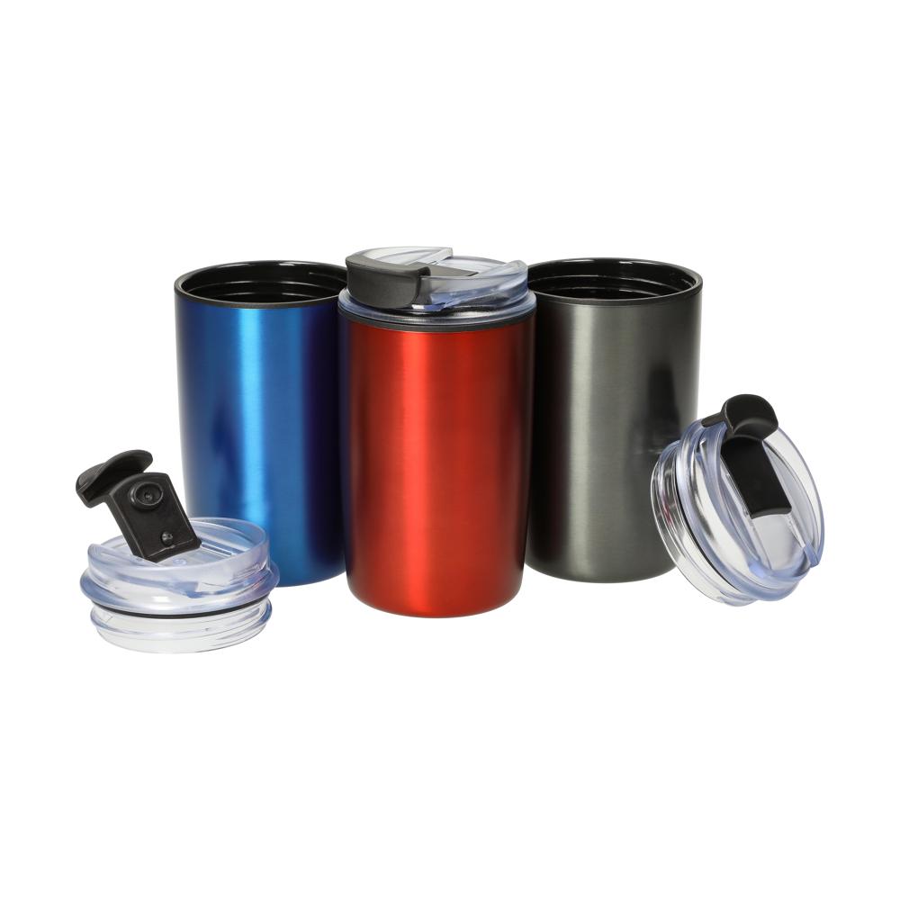 Dieser doppelwandige Kaffeebecher ist der ideale Begleiter für unterwegs. Die Außenseite besteht aus robustem Edelstahl, während das Innere aus hochwertigem Kunststoff gefertigt ist. Eine integrierte Silikondichtung im Deckel sorgt dafür, dass Ihr Getränk sicher verschlossen bleibt. Mit der praktischen Lasche am Deckel lässt sich der Becher mühelos öffnen. Ein zuverlässiger Begleiter für Ihren Kaffee-Genuss, egal wo Sie sind. Füllvolumen: 300ml