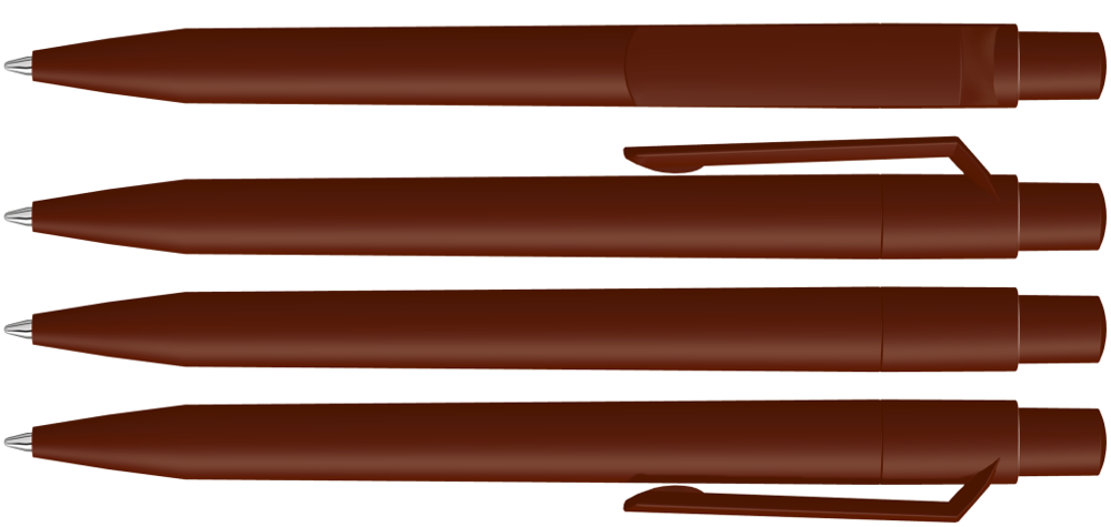 Druckkugelschreiber mit gedeckt mattem Gehäuse, Clip, Drücker und Stopfen.