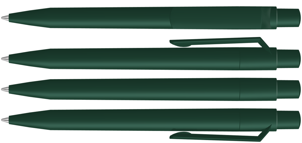 Druckkugelschreiber mit gedeckt mattem Gehäuse, Clip, Drücker und Stopfen. mehr