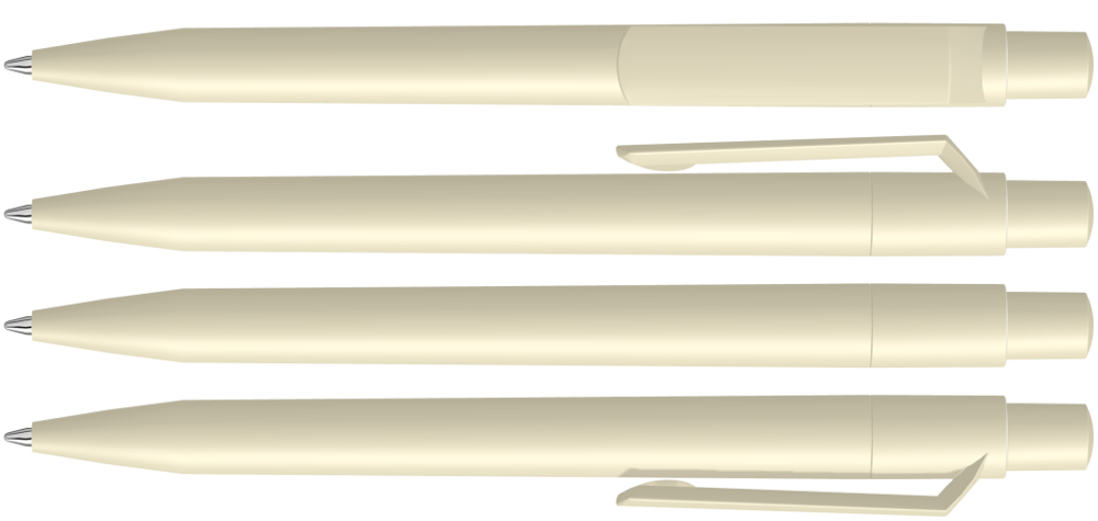 Druckkugelschreiber mit gedeckt mattem Gehäuse, Clip, Drücker und Stopfen.