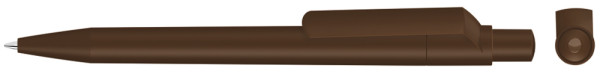 Druckkugelschreiber mit gedeckt mattem Gehäuse, Clip, Drücker und Stopfen.