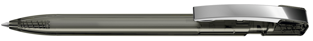 Druckkugelschreiber mit transparent glänzendem Gehäuse und flexiblem Metallclip glanzverchromt. mehr