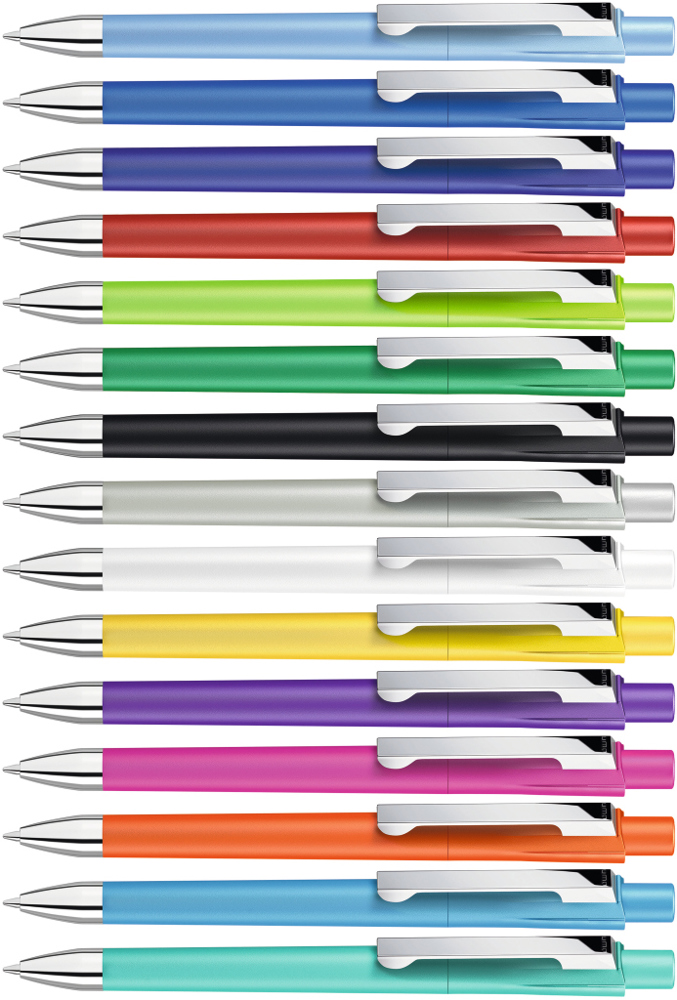 Druckkugelschreiber mit gedeckt mattem Gehäuse. Schwere Metallspitze und Metallclip glanzverchromt. mehr