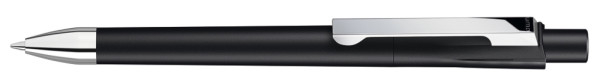 Druckkugelschreiber mit gedeckt mattem Gehäuse. Schwere Metallspitze und Metallclip glanzverchromt. mehr