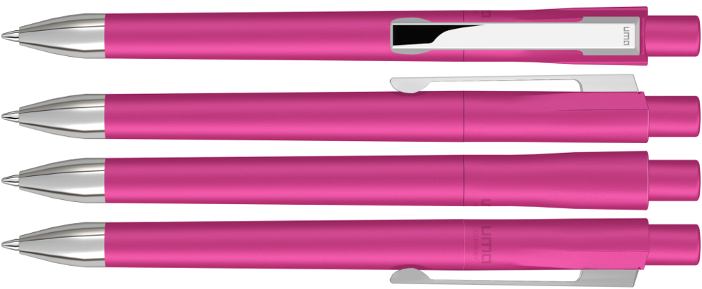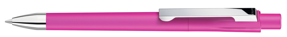 Druckkugelschreiber mit gedeckt mattem Gehäuse. Schwere Metallspitze und Metallclip glanzverchromt.