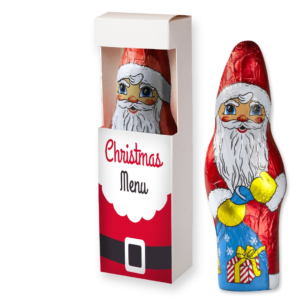 Schoko Weihnachtsmann, ca. 75g, Faltschachtel mit Sichtfenster