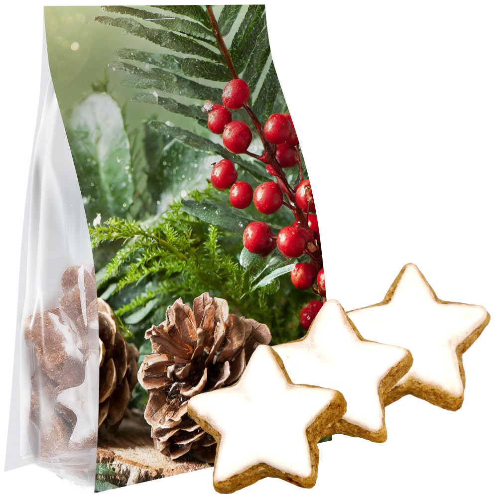 Zimtsterne, 100g, Express Blockbodenbeutel mit Werbereiter