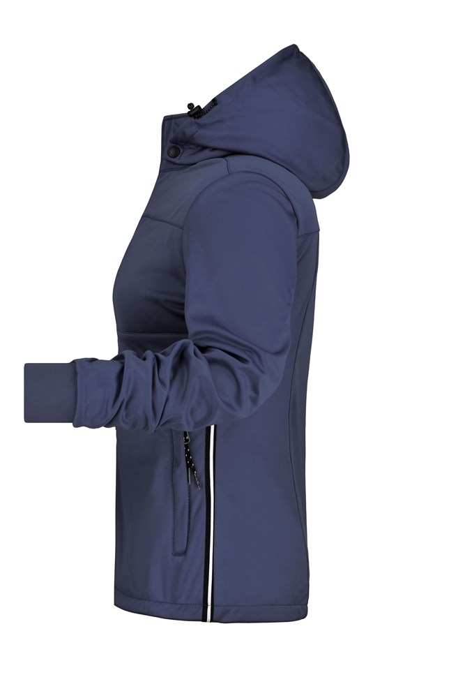 3-Lagen Funktionsmaterial mit TPU-Membran Wind- und wasserabweisend (5.000 mm Wassersäule), atmungsaktiv und wasserdampfdurchlässig (1.000 g/m²/24h) Nähte nicht versiegelt Stehkragen, abknöpfbare Kapuze 2 seitliche Taschen und 1 Brusttasche mit Reißverschluss Elastische Kordel mit Stopper an Kapuze und Saum Reißverschluss zur Veredelung Reißverschlüsse und seitliches Band in Kontrastfarbe Ärmelabschluss mit Strickbündchen JN1077: Leicht tailliert 1/2 Oberweite: 49 cm 1/2 Taillenweite: 43 cm 1/2 Saumweite: 49 cm Länge ab Schulter Vorderteil: 64 cm Länge ab Schulter Rückenteil: 66 cm Ärmel Länge: 66 cm Softshell bonded Brusttasche Atmungsaktiv-Wasserdampfdurchlässig Wassersäule ab 1.500 mm Wassersäule ab 2.000 mm Wassersäule ab 3.000 mm Wassersäule ab 5.000 mm Wind & Wasserabweisend Kapuze abnehmbar Sublimations-Textilien