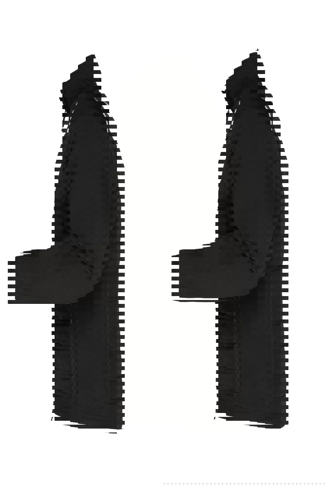 Pflegeleichtes 2-Lagen Softshellmaterial kombiniert mit gesteppten Einsätzen im Vorder- und Rückenteil