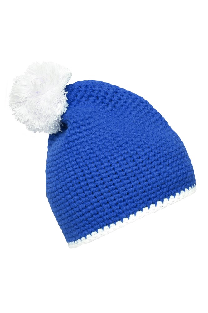 Pompon Hat with Contrast Stripe