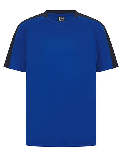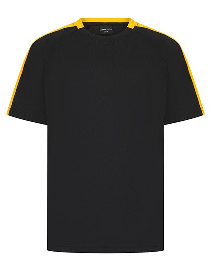 Single-Jersey | Material mit feuchtigkeitsregulierender Oberfläche | 2-teiliger Kontrastkragen | Crewneck | Raglan-Ärmel | Seitliche Kontrasteinsätze aus dem gleichen Stoff am Ärmel | Abreißetikett