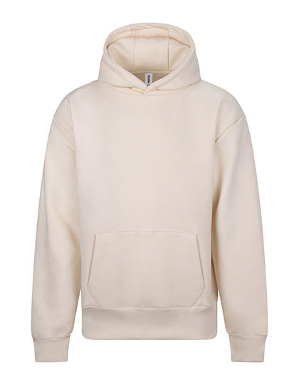 Ringgesponnene Baumwolle / recycelter Polyester | Oversize fit | Schweres Material | Doppellagige Kapuze mit drei Segmenten | Kängurutasche mit Handy-Innentasche | Keine Kordelzüge | Gerippte Ärmelabschlüsse und Saum | Gebürstetes Innenvlies | 100 % Baumwoll-Obermaterial | Abreißetikett