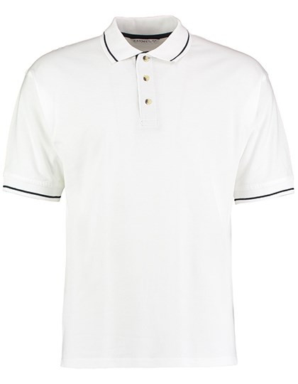 1x1-Rippstrickkragen und -bündchen mit Kontraststreifen | Schräge Kontrastknopfleiste mit drei Knöpfen | Kontrastierende Seitenschlitze mit Fischgrätenmuster | Halbmondförmige Rückenpasse | Verstärkte Schulternähte | Doppelte Ziernähte an den Bündchen | Nackenband und Innenkragen aus dem gleichen Stoff in Kontrastfarbe | Doppelte Ziernähte an Armausschnitten und Schulternähten | Doppelnadel-Saum | Ersatzknopf am Pflegeetikett | Gewebtes Nackenetikett