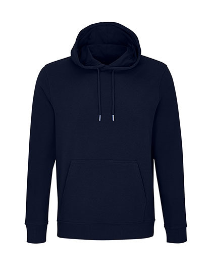 Außenmaterial: gekämmte Bio-Baumwolle in Umstellung | Recycelter Polyester | Geschnitten und genäht | Eingesetzte Ärmel | 2x2-Ripp an Bündchen und Saum | Kängurutasche | Jersey-Halbmond und Nackenband im Kragen | Kapuze mit Jersey-Futter | Kordelzug mit Metallösen und Stoppern | Ungebürstete Innenseite