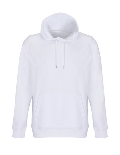 Außenmaterial: gekämmte Bio-Baumwolle in Umstellung | Recycelter Polyester | Geschnitten und genäht | Eingesetzte Ärmel | 2x2-Ripp an Bündchen und Saum | Kängurutasche | Jersey-Halbmond und Nackenband im Kragen | Kapuze mit Jersey-Futter | Kordelzug mit Metallösen und Stoppern | Ungebürstete Innenseite