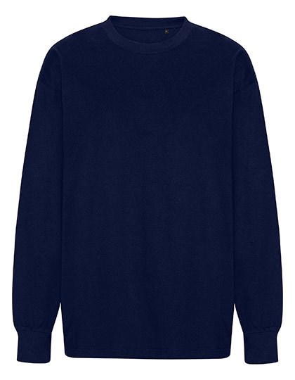 100% gekämmte Baumwolle in Umstellung | Single-Jersey Strick | Oversize-Passform | Langärmelig | Rundhalsausschnitt | Inneres Nackenband | Ohne Etikett