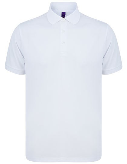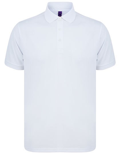 100% recyceltes Polyester-Piqué | Doppellagiges Piqué-Gewebe | Normale Passform mit 3-Knopfleiste | 1x1 Rib Kragen | Henbury-Stehkragen | Bündchen gerippt | Gleichfarbige Knöpfe | Feuchtigkeitstransportierende Eigenschaften | Henbury-Cut-out-Etikett und Größenmarkierung | Weiß ist für den Sublimationsdruck geeignet | Biologisch abbaubare Plastikbeutel