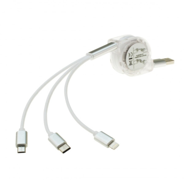 3in1 Aufrollladekabel Weiß