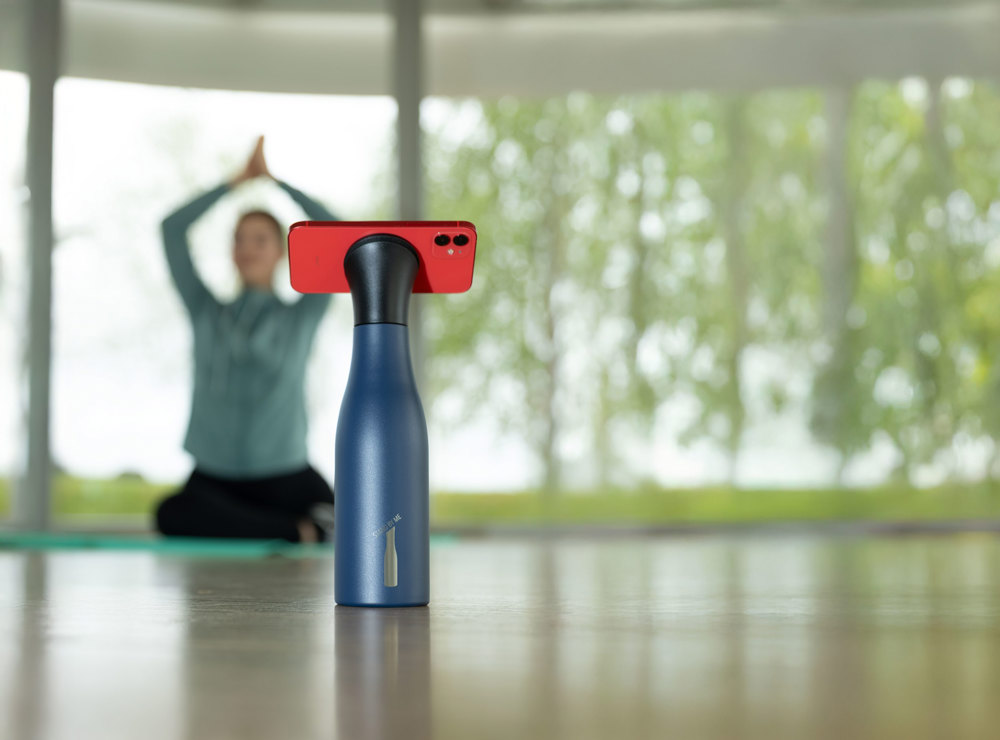 Thermoflasche mit MagSafe Flaschenverschluss, Doppelwand-Isolierung mit Vakuum, 550 ml Fassungsvermögen, lebensmittelecht, mit magnetischem, abgeschrägten Verschluss, der als Handyhalterung dient, zusätzlicher Metallring mit 3M Klebestreifen zum Anbringen an allen gängigen Smartphones, 201 Edelstahl, 304 Edelstahl, Kunststoff, matt, blau