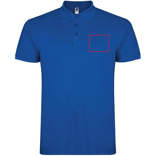 Kurzärmeliges Poloshirt für Kinder. Verstärkte und verdeckte Nähte am Innenkragen. 1x1 Rippstrickbündchen an Ärmeln und Kragen. Seitennähte. 3-Knopfleiste und Seitenschlitze. Optionale Tasche. Herausnehmbares Etikett. Das Modell ist 124 cm groß und trägt Größe 5/6.