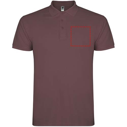 Kurzärmeliges Poloshirt für Herren. Verstärkte und verdeckte Nähte am Innenkragen. 1x1 Rippstrickbündchen an Ärmeln und Kragen. Seitennähte. 3-Knopfleiste und Seitenschlitze. Optionale Tasche. Herausnehmbares Etikett. Das Modell ist 185 cm groß und trägt Größe L.